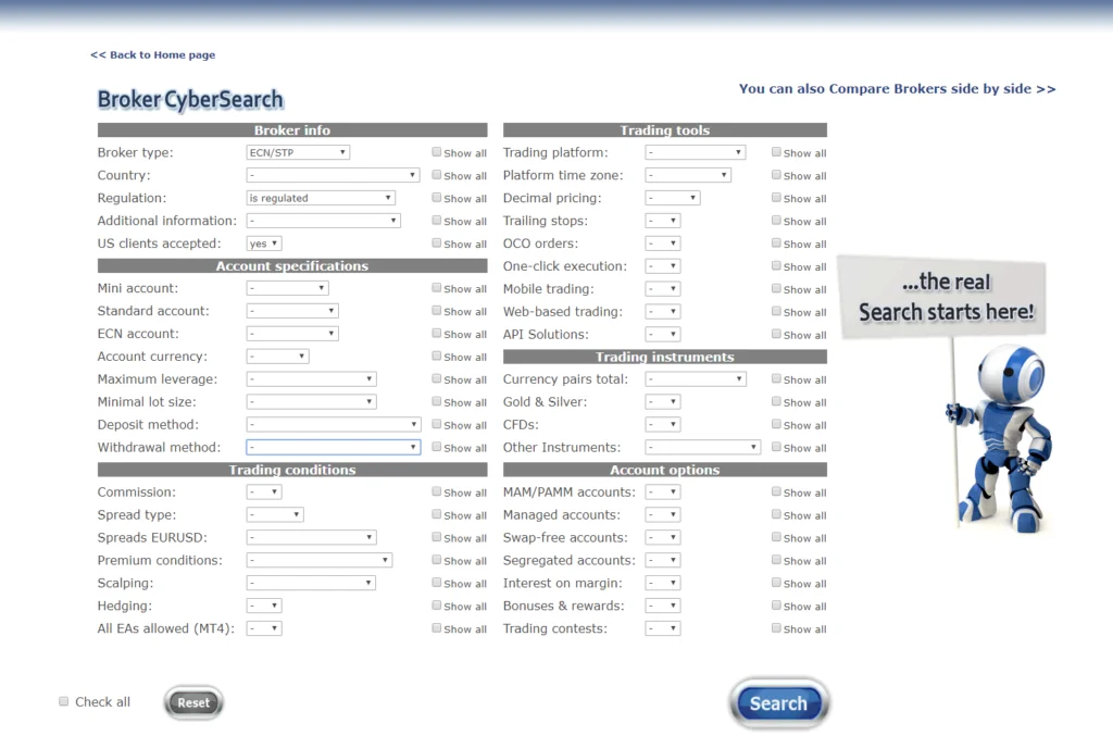Para elegir un broker uso este buscador que permite especificar filtros en la selección y así elegir el que se ajusta a los criterios que necesitamos. Aquí os dejo un motor de búsqueda alternativo por si queréis echarle un ojo también.
